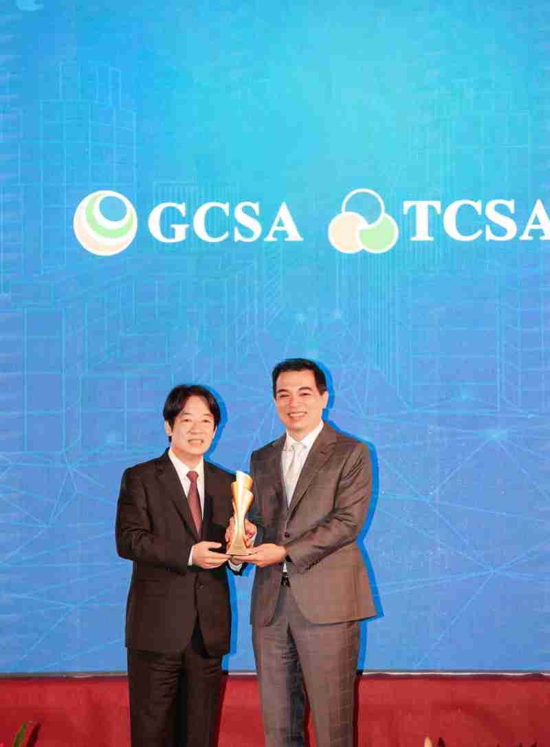达全方位永续表现获全球永续奖及台湾永续奖肯定,,由副总统赖清德颁奖 (左),,,,28国际总经理柯富仁 (右) 代表领奖