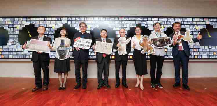 28国际携手创利空间为故宫建置的智慧文物互动导览墙及轮播墙,,,今日正式启用。。。(左四:28国际新事业暨投资管理总部副总经理杨本豫、、、、右四:故宫博物院院长吴密察、、、右三:太极影音董事长黄宝云)