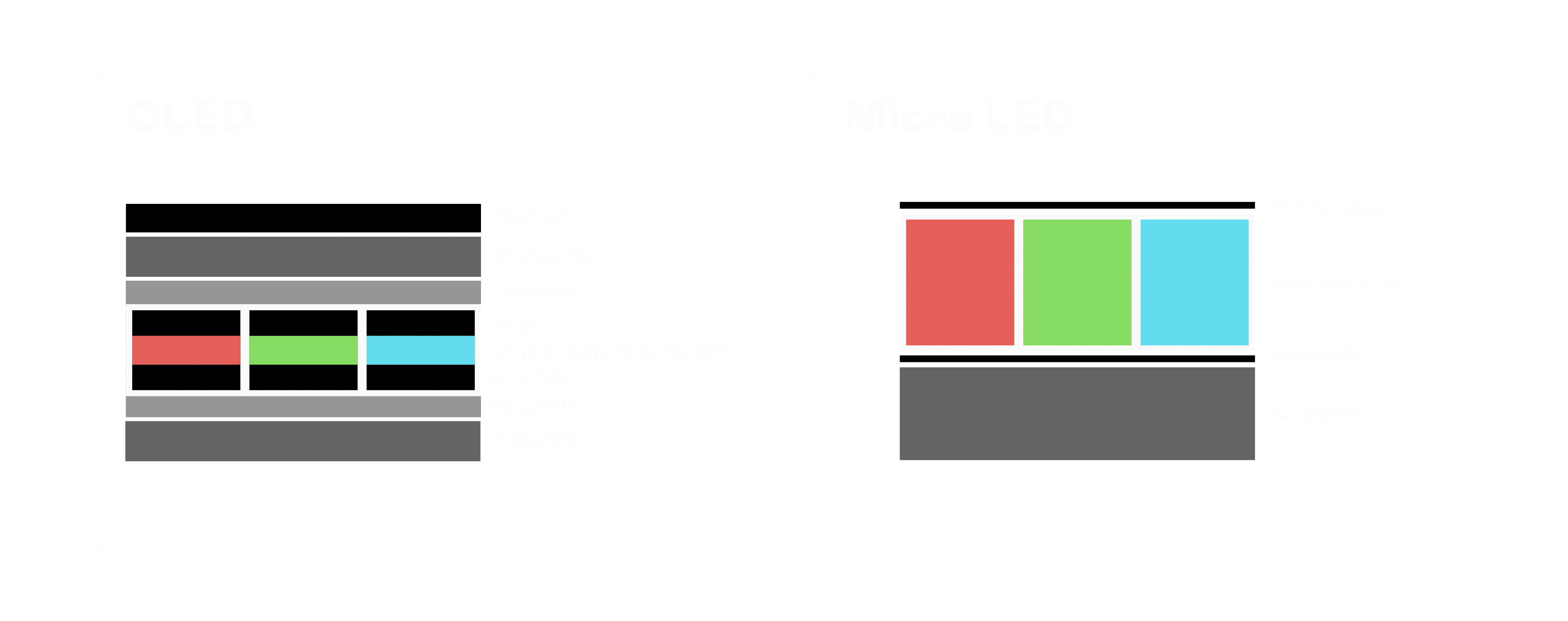 以 LED 做为显示画素,,,可让 LED 的发光效率发挥到极致,,,从而让显示器具备优异的亮度表现,,,,不论是在户外或室内,,,均具备出众的显示效果。。。。同时,,,,与使用有机材料的 OLED 相比,,LED 具备更稳定、、寿命更长的特性,,不仅不会有画面烙印问题,,,,而且更不容易出现故障、、、坏点。。